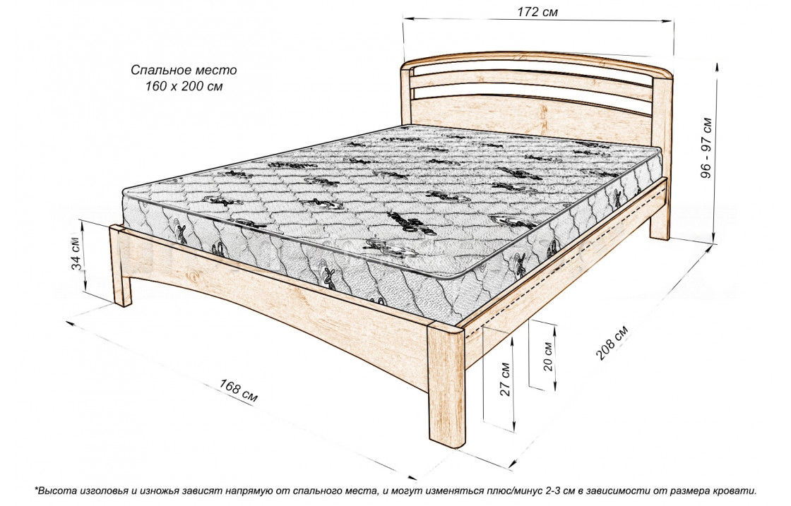 кровать Кровать Бостон выполнена из натурального древесного массива, имеет устойчивые ножки и дугообразные изножье с изголовьем. модель отличается износостойкостью, прочностью, лаконичным дизайном и надёжной конструкцией. купить изделие по специальной цене можно в интернет-магазине. Осуществляется доставка на дом по Тамбову и Тамбовской области.| Размер | Цена | |