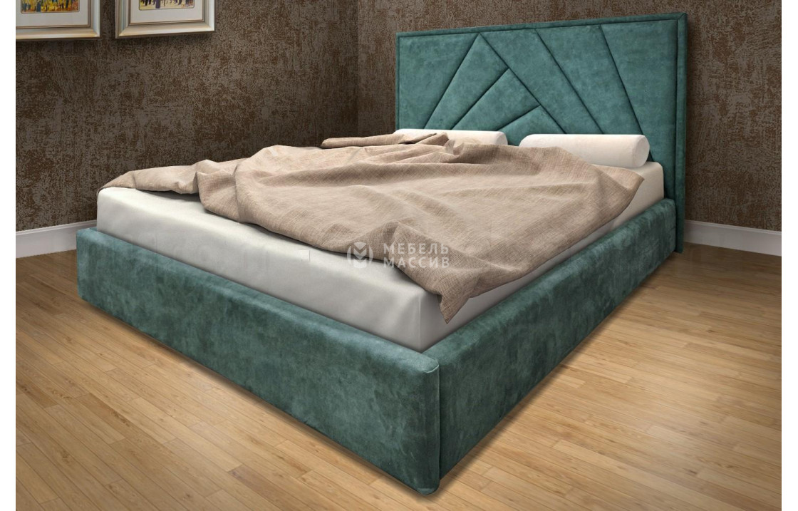 Мягкая кровать "Женева" из натурального дерева и ткани.