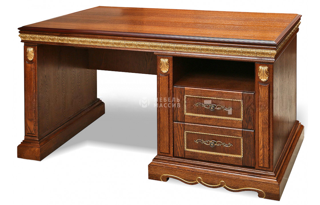 Письменный стол Милано-2 с тумбой позволит оформить рабочую зону в домашнем либо офисном кабинете. Он имеет классический дизайн, но при необходимости его можно вписать и в современные интерьеры. Респектабельный внешний вид изделия дополняется функционалом, для комфортной работы тут есть массивная столешница, а также полка и два выдвижных ящика, где будут храниться нужные предметы. Устойчивость конструкции обеспечивает не только надежный материал в виде натуральной древесины, но и современная фурнитура. Приобрести стол можно в различных цветах, представленных на странице товара.| Размер | Цена | |
